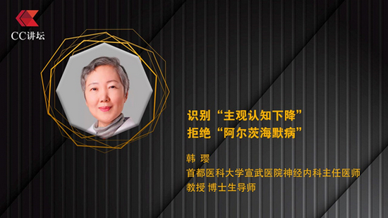 主题为“和而不同,思想无界”的 CC讲坛第45期演讲于2021年11月27日在北京以线上直播方式举行。来自首都医科大学宣武医院神经内科主任医师韩璎教授出席并以《识别“主观认知下降” 拒绝“阿尔茨海默病”》为题发表演讲。