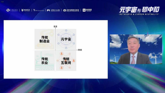 国富资本董事长、《元宇宙与碳中和》作者之一熊焰介绍了《元宇宙与碳中和》的创作缘由与主题把握,并根据“能量、数据与排放”三维坐标理论,就“元宇宙是碳中和最大的工程、碳中和是元宇宙最大的制约与最强支撑”这一观点进行了解读。