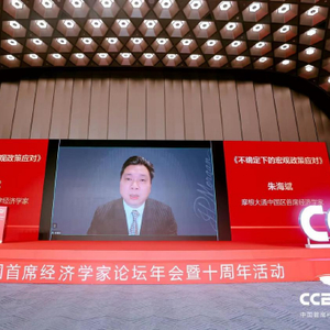 11月26-27日,中国首席经济学家论坛年会暨十周年活动在上海举行。摩根大通首席经济学家朱海斌发表题为《不确定下的宏观政策应对》的演讲。