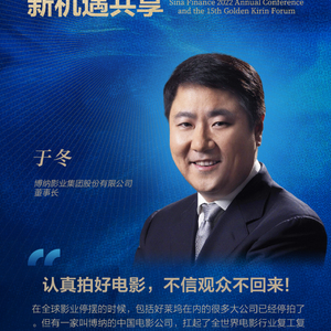 “新浪财经2022年会暨第15届金麒麟论坛”于12月14日-16日举行。博纳影业集团股份有限公司董事长于冬出席并演讲。