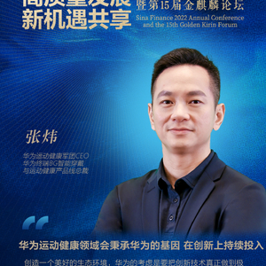 12月14日-16日,新浪财经2022年会暨第十五届金麒麟论坛举行,本届年会的主题为“高质量发展、新机遇共享”。华为运动健康军团CEO、华为终端BG智能穿戴与运动健康产品线总裁张炜出席并发表演讲。
