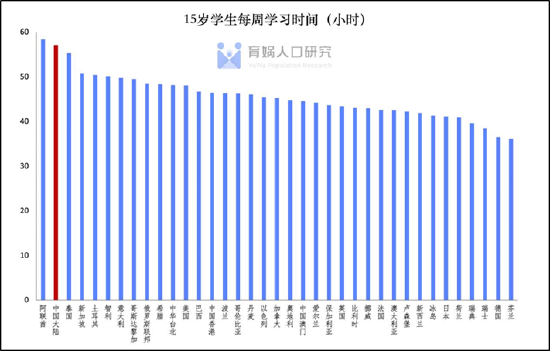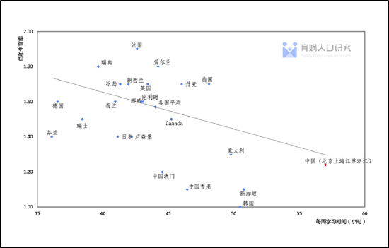 报告也特别指出,“学习时长”与“生育率”二者基本呈“负相关“的关系,每周学习时间越长,社会生育率水平越低,由此可见,教育负重已经成为压制生育率的大山。