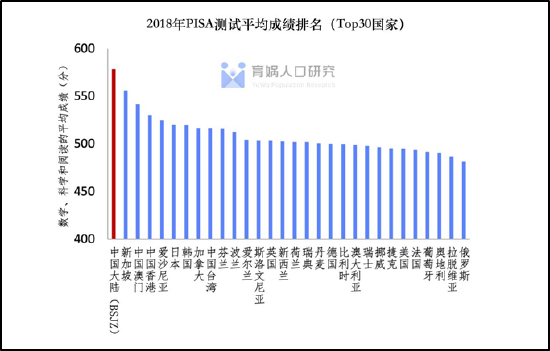 国际学生评估项目(PISA)2018年测试结果显示,在 79个国家和地区中,中国四省市(北京、上海、江苏、浙江)取得全部3项科目(阅读、数学、科学)参测国家和地区第一名的成绩。
