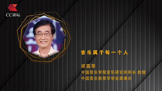 主题为“和而不同,思想无界”的CC讲坛第51期演讲在北京举行。来自中国音乐学院音乐研究所所长、中国音乐教育学会理事长谢嘉幸教授出席,并以《音乐属于每一个人》为题发表演讲。