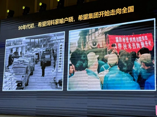 当年我们从养鹌鹑,养多了以后我们觉得太多了就卖不掉,在最旺的时候我们发一个告示,就是说我们今后不要养太多的鹌鹑了,因为这样会要崩盘的,所有人都不相信,我们发了告示,通过电台播了,价格一下暴跌,很多人骂我们,但是确实某种角度上帮助了这些农民朋友,后面我们转产饲料,那个时候市场经济还没有发展起来,是计划经济时期我们竞争对手是谁呢?是国有粮食系统,他们有粮票,所以说他们的买粮便宜一半,而我们没有粮票,只能市场去买,双轨制,价格很高,就是这样我们凭我们的技术,我们的研发,我们的服务,仍然供不应求。这中间还要感谢我们的竞争对手泰国正大,泰国正大在深圳办了一个工厂好不得了,是中国第一家中外合资企业,泰国正大和美国康地公司联办的一家正大康地,那个时候好旺呀,中央电视台天天都在播,我们敬一丹同志不是那个时候念过正大的广告词,我相信是有的,因为太火了,我们向泰国正大学习,我们也开始做饲料,很快我们一样的排长龙,最长的时候要开我的票提前半个月。买不到我的饲料咋办?都来排队,都来挤,有时候秩序不好把窗户都给我们弄坏了,没办,我们在田里修了一个圆的碉堡,人从梯子上爬上去开个小窗口在卖,为什么呢?太挤了,等半个月拿货,所以说这就是我们的第一桶金。