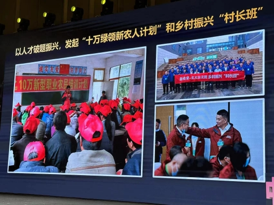 后面我们发现高质量的发展乡村,村长、村支书最重要,于是乎我们跟北大联合搞了一个北大国发院乡村振兴村长班,第一期前年培训了五十几个人,第二期去年培训了120多个人,我们希望五年至少培训叫做500个村长、村支书,没想到这个义务的现在报名的多,据说有上万个村长、村支书报名了,我们在中间挑一些我们觉得比较合适的。