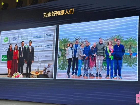 好了,这是我的家人,我太太对我很支持,我女儿现在进步成长很大,很成熟,明康主席在这,好几次活动明康主席都参加了,他说永好呀,他说你女儿比你能干,比你有水平。确实,他在批评我,因为有人比我厉害,但是我心里面特别高兴,因为我想到在大海上,我被拍在沙滩上的时候我看到扬帆启航的一个个巨人,其中我女儿为首的一帮年轻人,她们成长了、进步了,航海,轮船航得很稳很远,我们要驶向更远的未来的大海,我是内心高兴的,也谢谢我们明康主席,我们杜主席也在这,我们这还有好多的我们好朋友,包括振华、伟祥、田源,还有我们梓木,好多朋友,冯仑,这些教我一些歪门邪道的一些东西,还有立国、文中,特别是等一会儿口才了得,最困难的时候不倒,还要继续前行的敏洪同学,我向他们致敬,向他们学习。