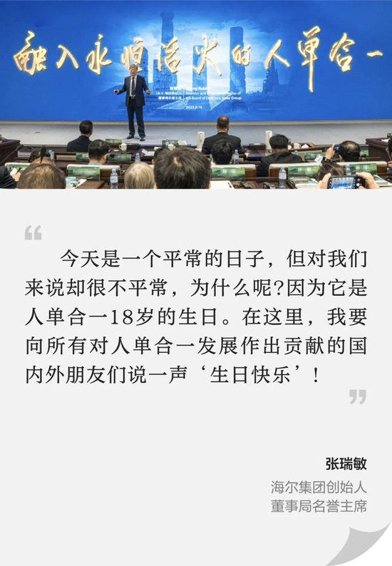 今年的9月20日是人单合一模式创立18周年纪念日。自2017年以来,每年的这个时间,海尔模式研究院和加里·哈默的管理实验室(MLab)都会联合举行一次高规格的论坛,全球管理学界、咨询界、企业界代表共同研讨人单合一理论的创新和管理实践的最新探索。“人单合一”由张瑞敏于2005年9月20日首次在公开场合正式提出,张瑞敏既是人单合一理论的创立者,也是躬身入局的实践者,还是这一颠覆性创新理论的传播推广者。9月16日,在提前召开的第七届人单合一模式引领论坛上,张瑞敏照例做主旨演讲,但这次的演讲与往届有大不同。在长达76分钟的演讲中,张瑞敏对人单合一管理思想的缘起与演进、原理与实践、结构与方法进行了框架式的总结,让人单合一管理思想首次得以体系化呈现。
