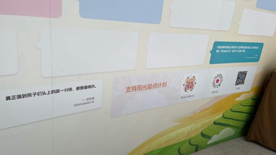 有趣的是,在会场外,主办方将这句话与筹款二维码放在了一起——先戳你心一下,然后马上募捐,主打一个不绕弯子。