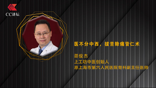 由北京君和创新公益基金会、中国科学院大学校友会联合主办,主题为“和而不同,思想无界”的CC讲坛第60期演讲2024年6月22日在中国科学院大学(北京玉泉路校区)礼堂举行。来自上工坊中医创始人邵俊杰出席,并以《医不分中西,拔苦除痛皆仁术》为题发表演讲。
