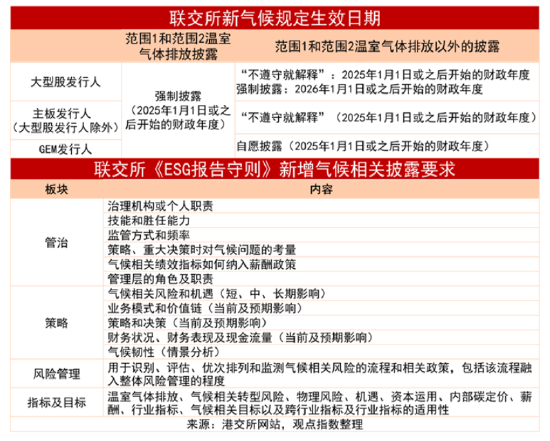 期内4月19日,联交所也发布最终的有关气候信息披露规定的咨询总结,并刊发协助发行人遵守新气候规定的实施指引,将《环境、社会及管治报告指引》名称修订为《环境、社会及管治报告守则》,进一步强调其强制地位。整体上香港ESG信披体系建设趋向于国际化标准,正在走向成熟和完备。