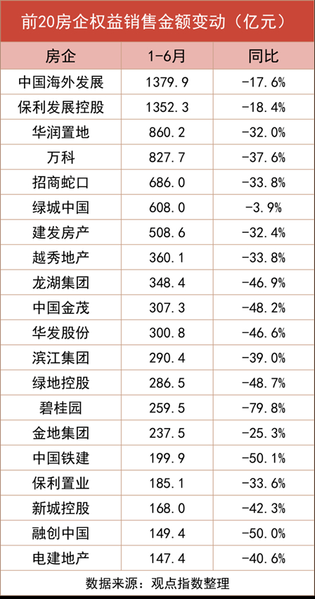 上半年权益销售1.36万亿,千亿房企数量仅2家