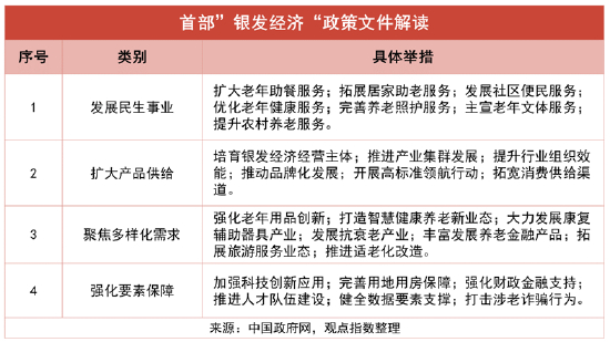 今年最大的标志性政策在于《关于发展银发经济增进老年人福祉的意见》的发布,这标志着银发经济发展元年的到来。