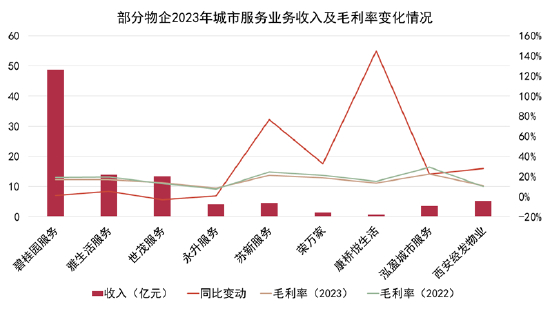 其中,城市服务领域,头部物企已具有较大的规模,但增长速度放缓,毛利率较低等压力也渐渐呈现。