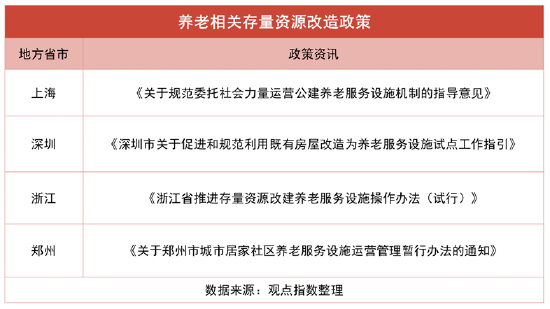 为解决养老发展缺乏廉价物业空间的问题,深圳市、浙江省和河北省出台的政策鼓励利用空置房屋和商业场所改建养老服务设施,以应对土地稀缺问题。如在浙江省印发的《浙江省推进存量资源改建养老服务设施操作办法(试行)》上,就为存量资源改建养老服务设施提供了地方性规范,简化审批流程,鼓励社会力量参与。