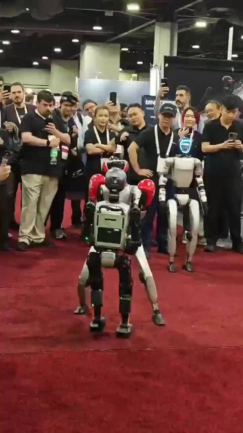 宇树科技市场负责人对新浪科技透露,该视频是最近同事带着机器人在参加展会的时候,遇到了其他人形机器人过来交流,简单互动了一下。