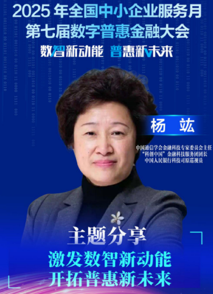 2025年全国中小企业服务月第七届数字普惠金融大会于2025年6月27日在北京举行,主题为“数智新动能,普惠新未来”。中国通信学会金融科技专家委员会主任、“科创中国”金融科技服务团团长、中国人民银行科技司原巡视员杨竑出席并致辞。