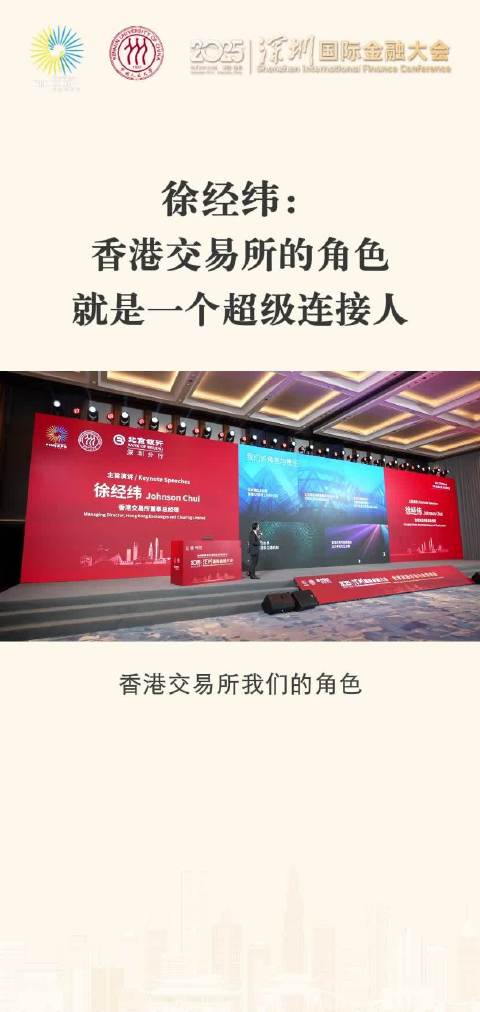 由中国人民大学主办的2025深圳国际金融大会于11月19日至21日在深圳举行。香港交易所董事总经理徐经纬发表主题演讲,强调港交所作为“超级联系人”,致力于“立足中国,连接世界”。