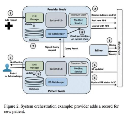 患者在他的一生中通常会问诊多位医生和专家,由于参与到医疗保健中的人员众多且所属机构不同,他们之间共享敏感性的医疗数据是较为困难的。同一患者的医疗记录因此分散在不同的医疗机构和保险公司中,不同机构之间重复和错误的记录导致了高昂的管理费用和冗余的流程。