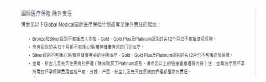 图五:国际常见医疗保险除外责任概述截图