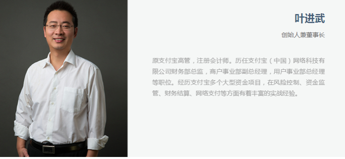 盈纳集团成立于2013年,运营主体为盈盈集团有限公司,创始人兼董事长叶进武与4位联合创始人张威威、王佳亮、熊伟、凌峰全部出自支付宝(中国)网络科技有限公司。其中,叶进武在支付宝历任财务部总监、商户事业部副总经理、用户事业部总经理;熊伟历任支付宝航旅事业部、无线事业部及保险理财团队、数字娱乐团队、淘宝平台产品部等核心团队的人力资源负责人(政委)。