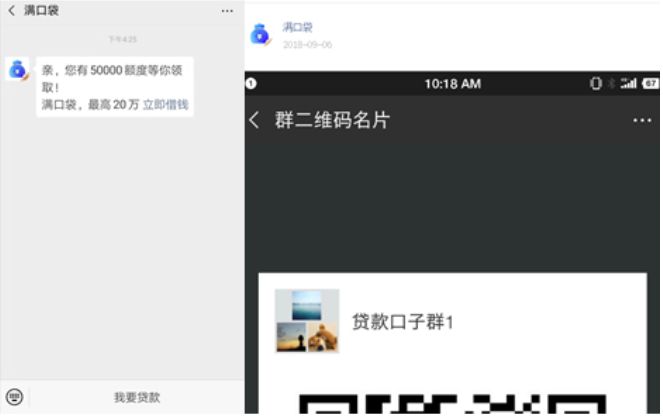 在撸口子论坛中,今年4月有管理员发帖介绍“满口袋”为老口子,但是沉默了很长时间没有任何动静,据管理员帖称,满口袋是盈盈有钱的新马甲。据满口袋官方微信公众号介绍,该平台最高可获得20万借款,但目前“立即借钱”、“我要贷款”链接均无法正常打开。该公众号最新更新文章是在2018年9月,推送了一张贷款口子群的二维码名片。