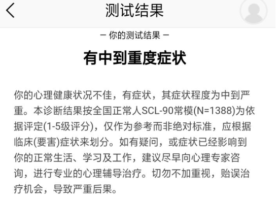 网络平台上,越来越多的孩子晒出自己量表的测试告诉大家:我是抑郁症;或者是告诉大家,这个人的抑郁症是装的,而我的抑郁症是真的——这似乎是在告诉大家,希望大家对我好一些;