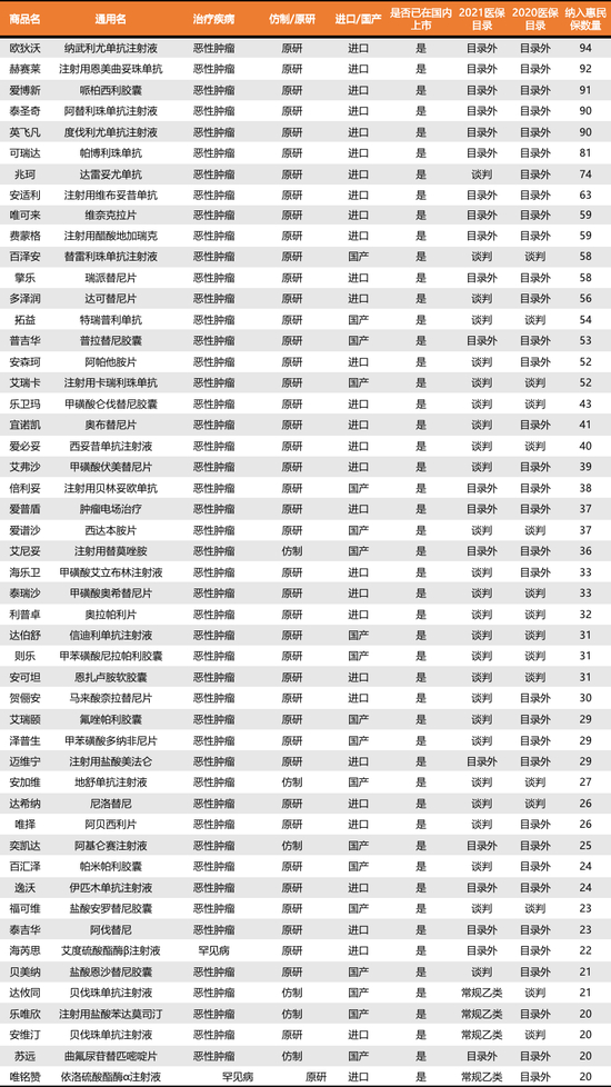 △纳入普惠险特药目录前50的药品情况