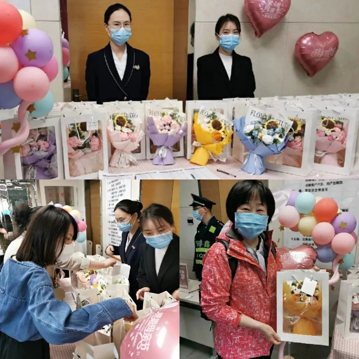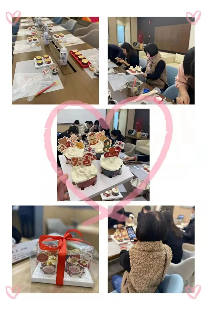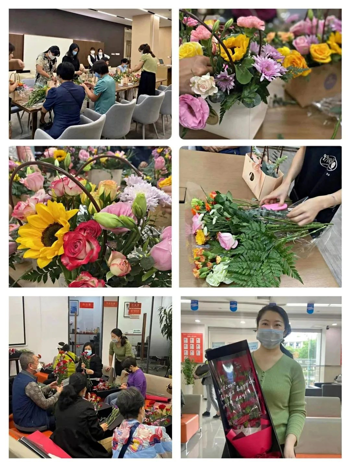 母亲节时,温州龙港支行就开展了蛋挞烘焙的茶话会,活动现场充满了欢声笑语;惠州、太原等分行还举办了插花沙龙,见证妈妈手作的新颖别致的插花作品“新鲜出炉”;深圳分行则准备了代表爱和感恩的红色康乃馨,还有线上K歌秀比赛,让妈妈们一展歌喉;石家庄分行则精心准备了母亲节纪念品—北京冬奥会颁奖同款手工绒线花束,花束采用非遗技术—海派绒线编结技艺手工钩编而成,永不凋谢,展现母爱的伟大永恒;珠海分行则是选择来到当地居家养老长者服务中心,为妈妈们送上节日暖心礼品,并举办了一场有趣的沙龙活动,现场气氛热烈。