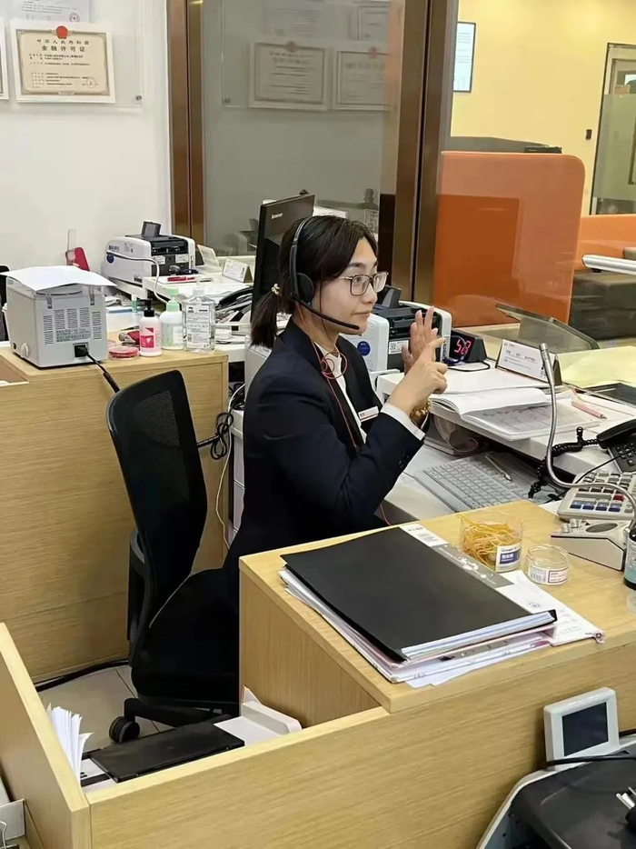 上海三林社区支行接待了一位聋哑人士,这位客户是过来开立工资卡的,但因为他无法通过一般流程中的语音提示及审核交流办理业务,所以在工作人员的指导下,成为了第一位体验支行“手语”特殊通道的客户。