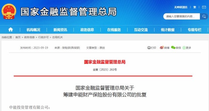 关于获批情况,《公告》显示,近日,公司收到《国家金融监督管理总局关于筹建申能财产保险股份有限公司的批复》,同意筹建申能财险,要求一年内完成筹建工作。筹建工作完成后,尚需取得金融监管总局批复后正式开业。