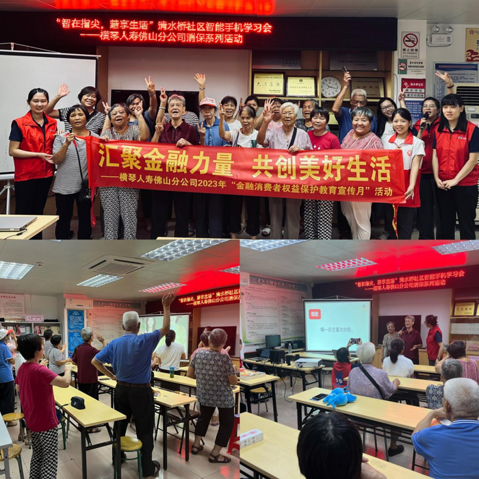 横琴人寿佛山分公司联合清水桥社区开展了面向老年人的金融知识宣传专项活动。活动现场,工作人员引导老年人朋友进行了健康舞蹈暖场活动,拉近了彼此的距离。随后为老年人讲解智能手机使用,帮助他们积极拥抱数字时代带来的便利,消弭数字鸿沟给老年人带来的不便与苦恼,同时在教学过程中以常见的诈骗套路举例,帮助老年人识别、判定网络诈骗,切实保护自身金融和财产安全。最后以深入浅出、幽默的方式,分享身边金融诈骗案例;并通过游戏(如你画我猜、击鼓传花等)的方式,进行金融知识普及,现场互动氛围良好,老年人朋友纷纷表达感谢,希望横琴人寿多做、多开展类似活动。