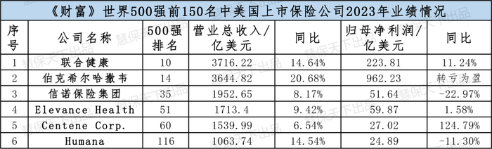 对于伯克希尔来说,2023年营收大涨,其中保险业务的良好增长功不可没,但对于整个行业来说,却不能下简单的非黑即白的判断。目前,美国上市保险公司基本披露了2023年业绩情况,部分公司年报虽未正式出炉,但业绩数据已经透露了众多信息。因此,“慧保天下”选取了《财富》世界500强前150名中上榜企业,以管中窥豹美国保险业2023年的发展情况。