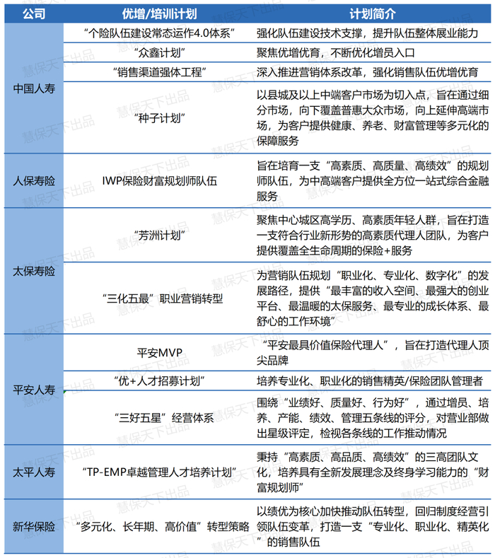 6家主要上市寿险公司均在过去一年里加速优增人力突破,启幕代理人职业化发展路径。以中国人寿为例,2023年公司以“个险队伍建设常态运作4.0体系”“众鑫计划”“强基工程”等持续稳固队伍基本盘,再利用“种子计划”布局新型营销,打造“专业、价值、融合”的金融保险规划师队伍。