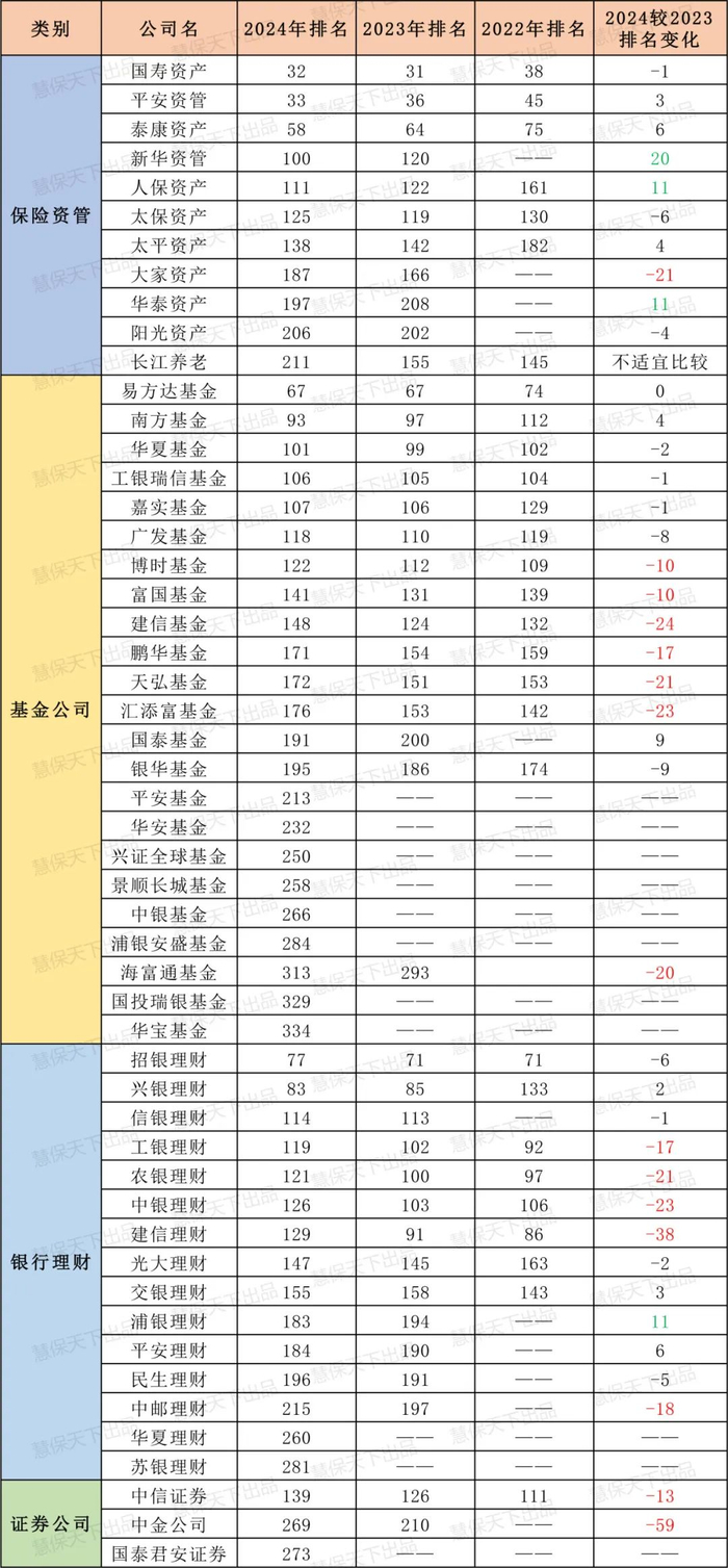 11家保险资管上榜表现亮眼,6家排名上升,“大哥”国寿资产排名下降,平安资管紧随其后