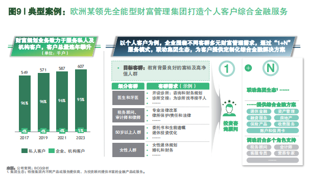 客户精细化经营:针对私人客户,以教育背景良好的富裕及高净值人群为目标客群,并进一步细分四大客群,以不同客群的差异化需求为切入点开展客户服务。
