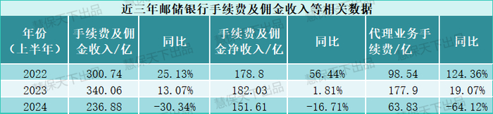 与其他大行相比,邮储银行2024年上半年中收业务的表现可以说较为“突出”:
