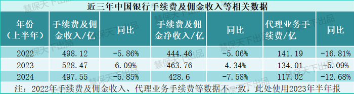数据显示,2024年上半年,中国银行手续费及佣金收入497.55亿元,同比下降5.85%;中国银行实现手续费及佣金净收入428.6亿元,同比减少35.16亿元。值得注意的是,在六大行里,中国银行这两项数据的下降幅度已经是最小的了,但仍下降逾5%及7%。