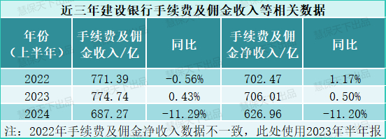 2024年上半年,建设银行实现手续费及佣金收入687.27亿元,较上年同期减少87.47亿元,同比降低11.29%;代理业务手续费同比减少45.21 亿元,降幅高达33.37%。对此,建设银行在半年报中解释道,主要是受保险、基金、托管等降费政策影响。