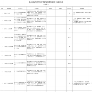 国家医保局印发《血液系统类医疗服务价格项目立项指南(试行)》