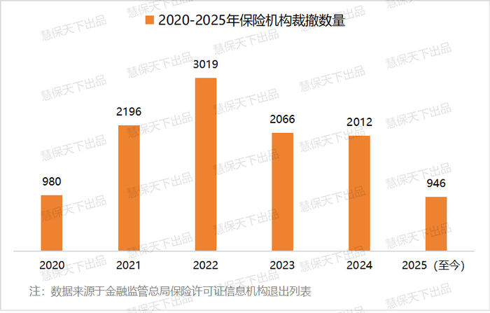在行业深度转型、险企普遍推进降本增效之下,保险公司裁撤分支机构的趋势愈发明显。据“慧保天下”不完全统计,2020年至2025年,全国保险公司累计裁撤分支机构逾万家。