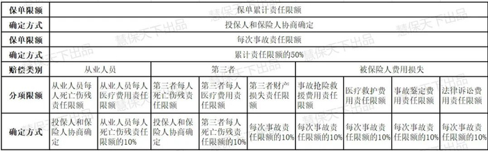 根据征求意见稿,标准条款共包含六项独立保险责任,包括从业人员人身伤亡赔偿责任、第三者人身伤亡和财产损失赔偿责任、事故抢险救援费用、医疗救护费用、事故鉴定费用、法律诉讼费用,保险费交纳须明确见费出单,保险期间参照交强险设置为一年,且医疗费用责任限额和免赔额比例须固定化。