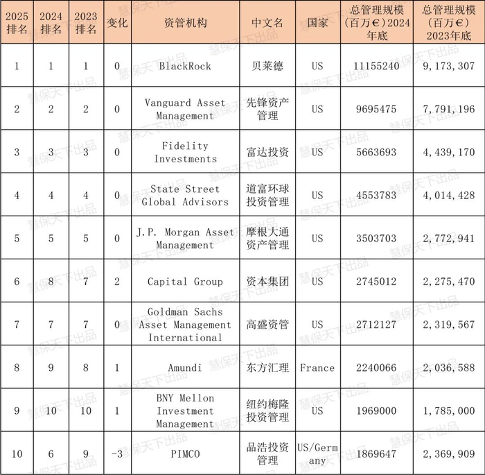 全球格局马太效应加强,前5垄断榜单,贝莱德管理规模超11万亿欧元,美国公司霸榜