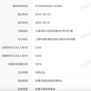 中基协官网显示,6月23日,太保致远(上海)私募基金管理有限公司在中基协完成登记备案,公司实控人是太平洋资管,出资认缴比例100%。