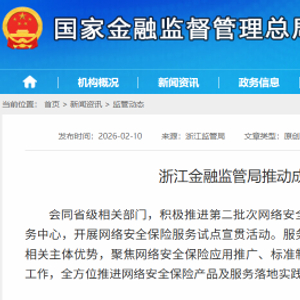 2月11日金融一线消息,国家金融监管总局浙江监管局发布公告称,会同省级相关部门,积极推进第二批次网络安全保险服务试点工作,推动成立网络安全保险(浙江)服务中心,开展网络安全保险服务试点宣贯活动。服务中心汇聚保险机构、网络安全机构、第三方服务机构等相关主体优势,聚焦网络安全保险应用推广、标准制定、教育培训、产品创新、风控模型、信息平台等方面工作,全方位推进网络安全保险产品及服务落地实践。