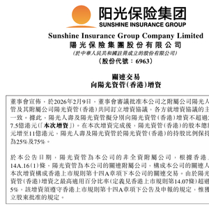 2026年2月9日,阳光保险发布关连交易公告,旗下附属公司阳光人寿、阳光资管,与阳光资管(香港)共同订立增资协议。