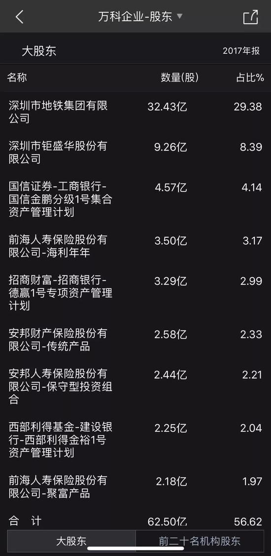 首先看上市公司万科A目前的股权结构。深铁集团去年7月起成为万科的第一大股东,持有29.38%;宝万之争时,宝能通过钜盛华以及前海人寿购入万科25.4%股权,为第二大股东。