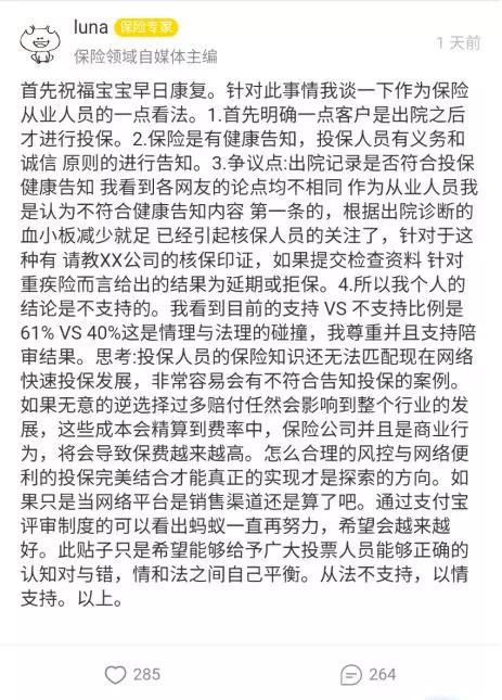 “风口没有一边倒的被人性的漩涡吸进看似政治正确的黑洞是规则制定者联盟和守护者联盟的万幸。但终究说来要做惠及于民的“大”保险生态系统,人性的占比是不是应该略高于理性,哪怕只是51%:49% 。感福泽深厚,延寿万年。”