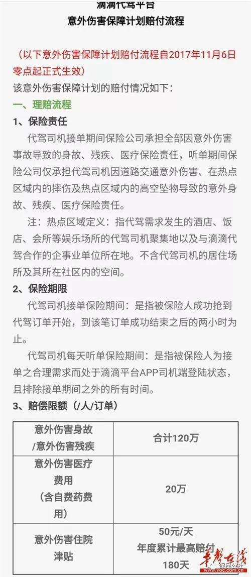 滴滴平台对此表示,所收取的2.35元/单“保障金”,其实用途一分为二:一部分用来购买保险,另一部分则用于成立滴滴平台自己的“保障计划”,为代驾司机提供120万的意外身故及伤残风险保障以及一些其他类似保险公司提供的意外医疗、住院津贴等风险保障。