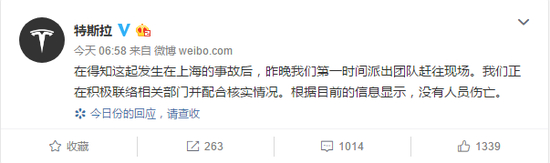 新浪财经讯 4月22日消息,对于昨日上海一小区地下车库内特斯拉突然自燃起火一事,特斯拉官方微博22日早间回应称,已派团队赶往现场,正积极联络相关部门并配合核实情况,根据目前的信息显示,没有人员伤亡。